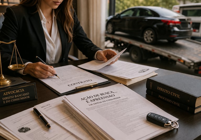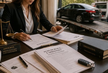 Assistência jurídica para casos de recuperação de veículos financiados.